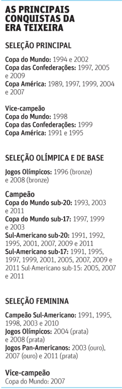 A conquista da Copa das Confederações da África do Sul, com vitória contra os Estados Unidos por 3 a 2, é até o momento o último título da era Teixeira.