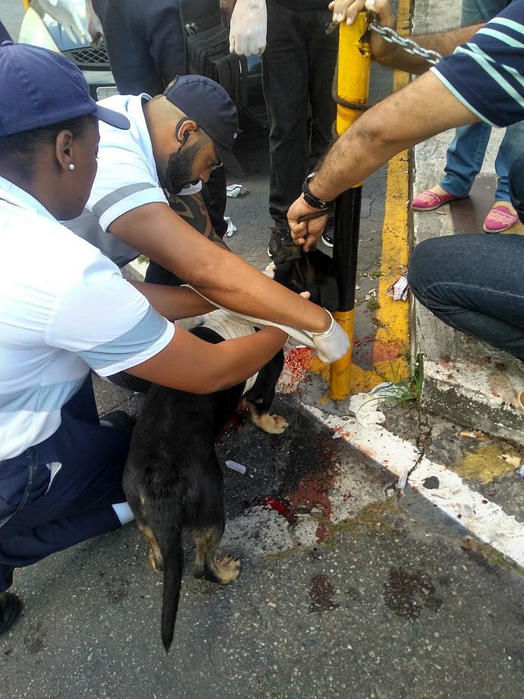 "No local, os policiais constataram que um vendedor ambulante tinha acabado de esfaquear o animal. O acusado foi conduzido e apresentado na Central de Flagrantes. A guarnição socorreu o cachorro, junto com prepostos da divisão de direitos humanos para uma clínica veterinária", resumiu a PM.