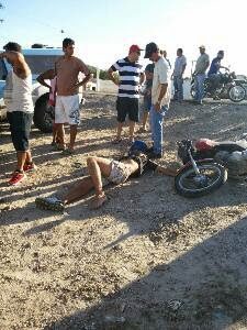 Um acidente entre carro e moto deixou duas pessoas feridas na BR 324, proximo ao contorno do Parque de Esposições de Jacobina. As vitimas foram identificadas como Robeilton Silvestre Pedreira e Jerlan Nunes da Cruz, de 26 anos, que sofreu ferimentos mais graves. Jerlan mora na Lagoa de Antônio Teixeira e Robeilton reside no bairro da Catuaba . Os dois foram socorridos pelo SAMU para o hospital municipal. O condutor do Gol fugiu do local abandonando o carro com a chave da ignição. Os veículos , um Gol Bola preto e uma Honda FAN 150 VERMELHA, estão no local sob a guarda da Polícia Militar.